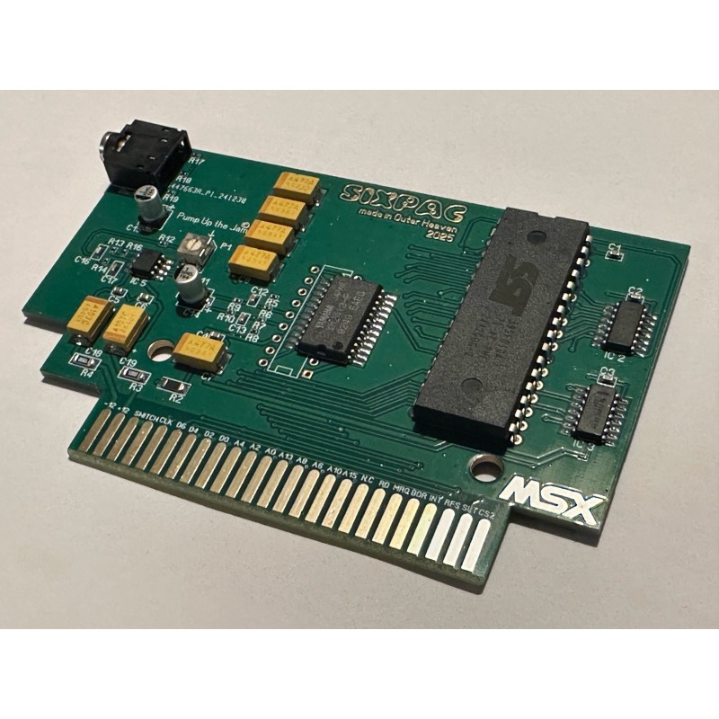 SIXPAC is a modern FM-PAC clone for the MSX, developed by members of Outer Heaven. It features a high-quality line-out, adjustable audio levels, and a few hidden surprises for MSX enthusiasts.